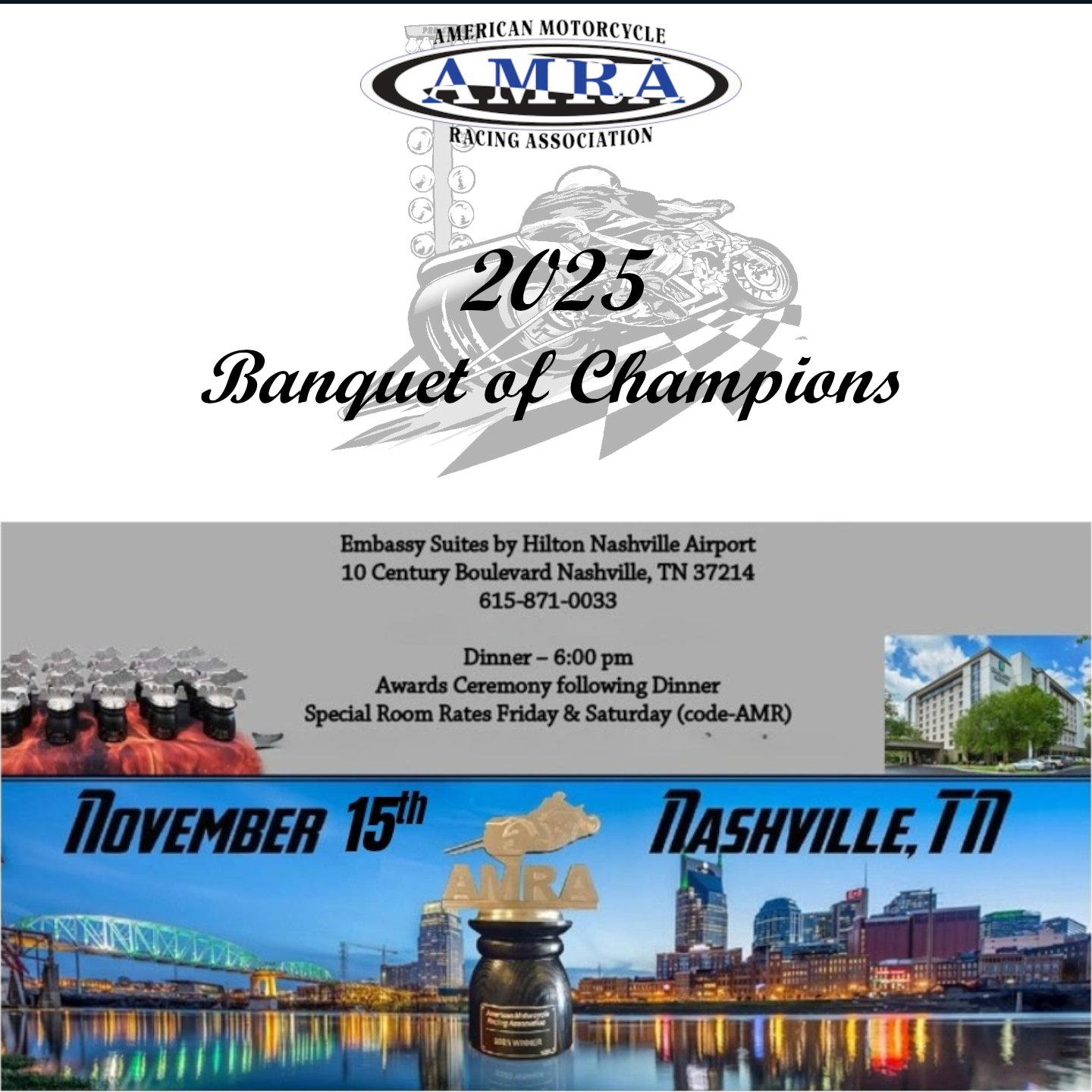The AMRA will crown its class champions on November 15th, 2025 at the Embassy Suites by Hilton Nashville Airport in Nashville, TN. Dinner will be served at 6pm followed by the awards presentation and evening of friends, fun and laughter. Ticket sales end November 9th so don’t wait!